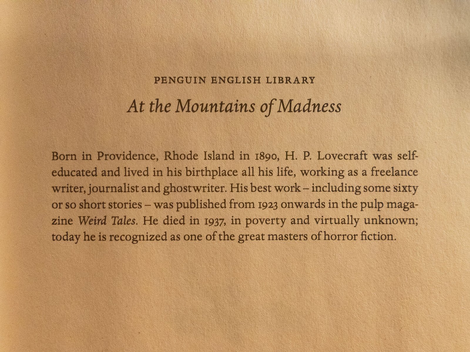 At the Mountains of Madness